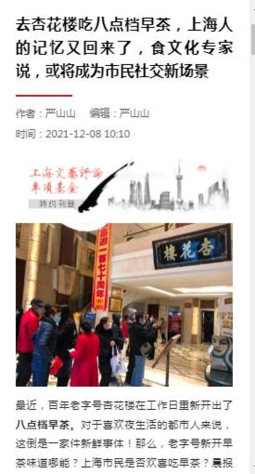 曾有调查显示,20世纪90年代,虹口十余家供应早茶的酒家在星期天是生意最好的时光,因为平日无暇光顾的工薪阶层会成为消费主力。而工作日,上班族享用早茶的比例不到百分之四。