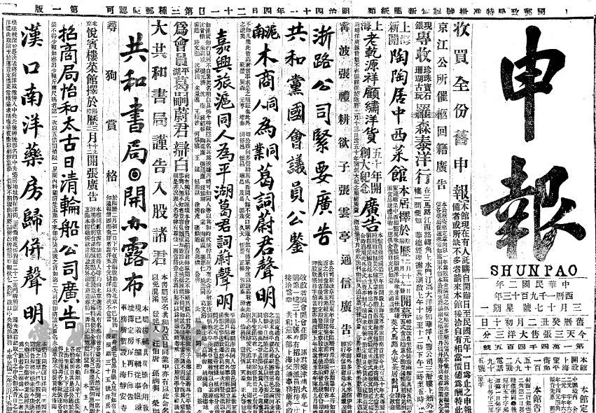 1913年3月17日《申报》刊发的陶陶居开业告示