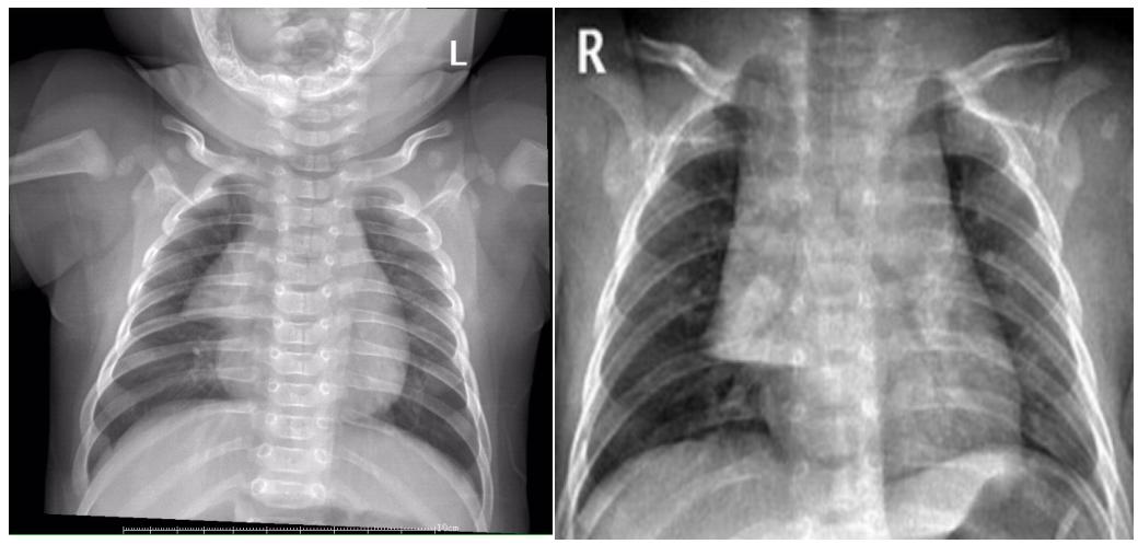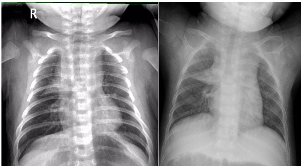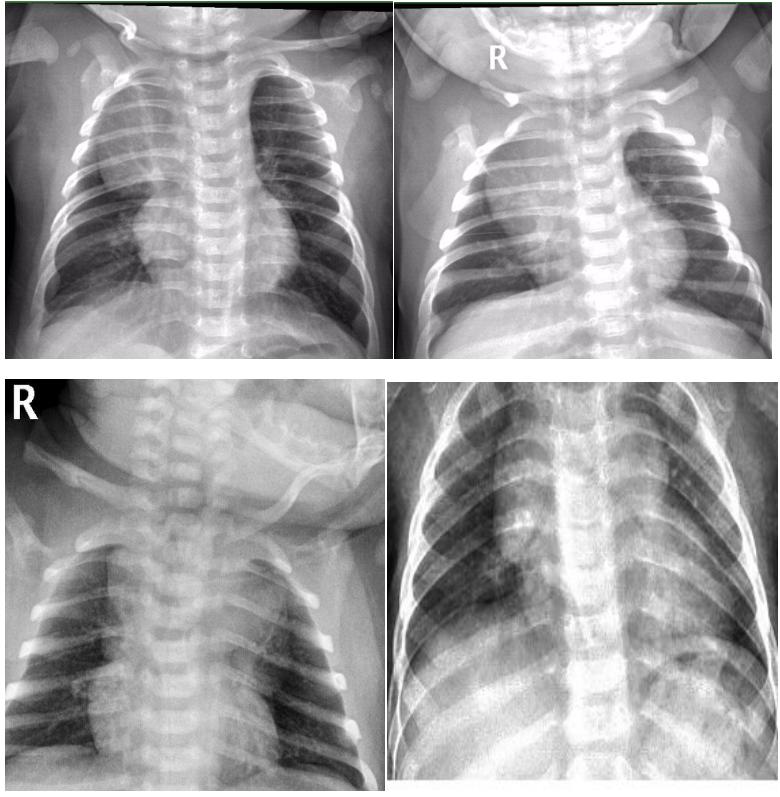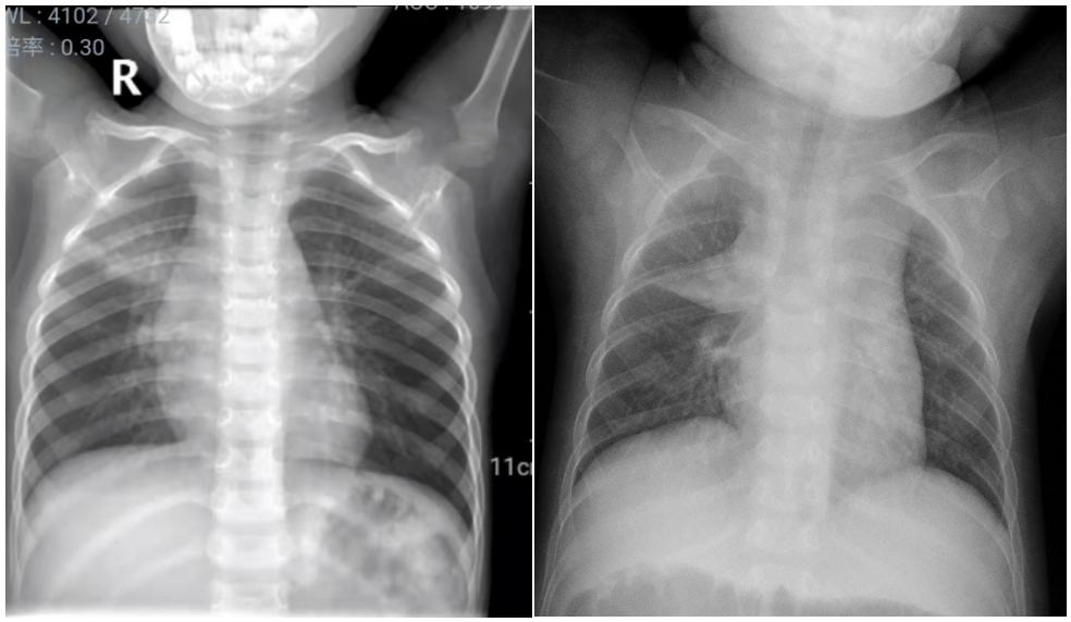 以上2组图片,你能区分哪张是肺炎患儿,哪张是正常胸腺影像吗?