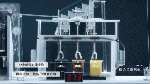 抗染色性挑战:浸泡72小时仍无染色为了让材料更隐形,日常佩戴不易察觉,MCS材料因其多层界面的反射,结合表面磨砂颗粒的漫反射,能够进一步增加隐形性,让我们牙齿矫正时的社交心理压力更小。