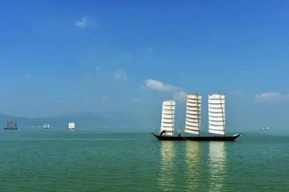 3.潮平两岸阔:潮水涨满时,两岸之间水面宽阔。风正:顺风。悬:挂。