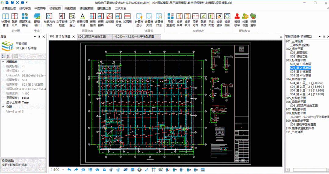 • 自研结构施工图智能设计功能,实现了混凝土结构平面图与梁板墙柱等构件施工图的自动生成。