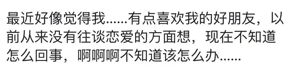 这时,ta们会开始重新审视与这个朋友的关系,于是友谊中不应该存在的“排他性”和“性意味”都开始萌芽——友谊被升华成了爱情。