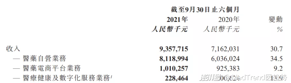 2021半年报营收136.4亿元,同比+55.4%。总收入的增长主要是由于销售医药和健康产品所得商品收入。