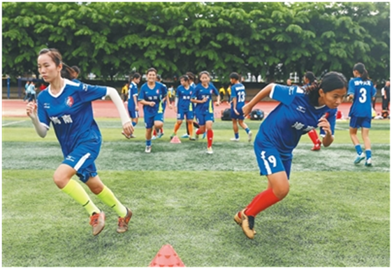 琼中女足的队员开展训练