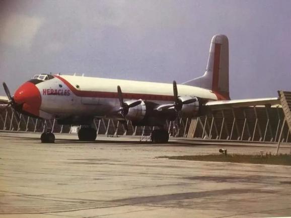 C-74“环球霸王Ⅰ”留下的为数不多的照片之一,注意观察其机头比较圆润,这是它和C-54运输机外观最大的不同之处。其机身上的标识很有意思——HERACLES,赫拉克勒斯,是古希腊神话中的大力神,完成了十二项不可能完成的任务,是古希腊神话中最伟大的英雄