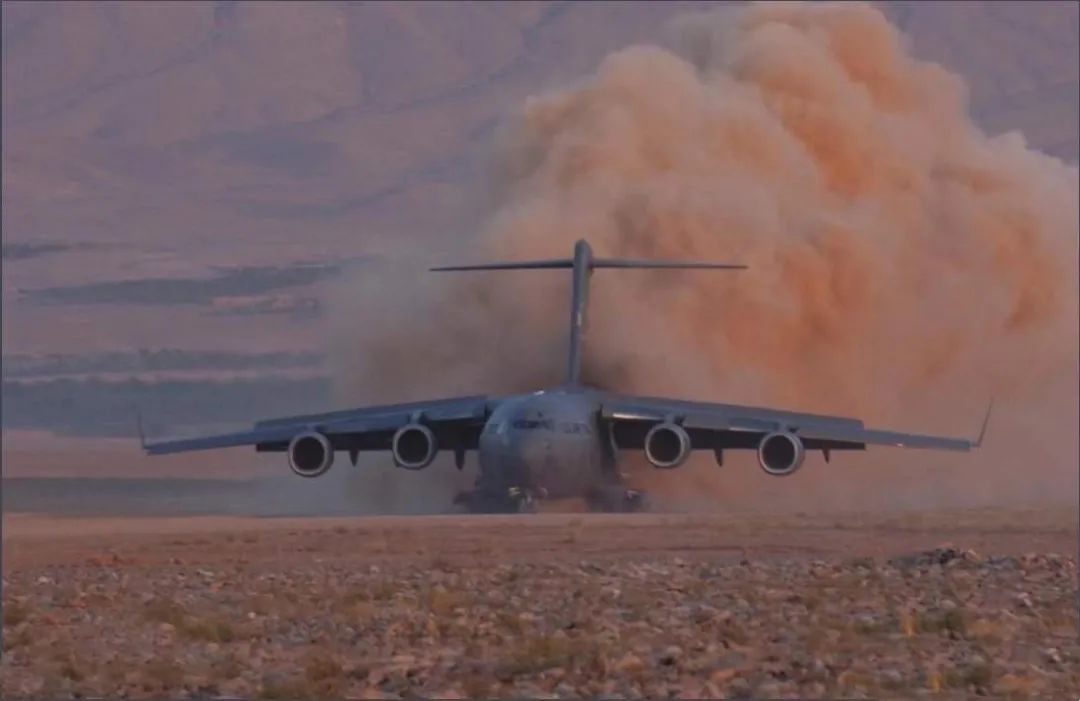 C-17在野战机场起降,可见其优越的起降能力,虽然是上个世纪的产物,但他仍是现代战略运输机的标杆机型,我国的运-20在换装新型发动机之后性能有望与之匹敌