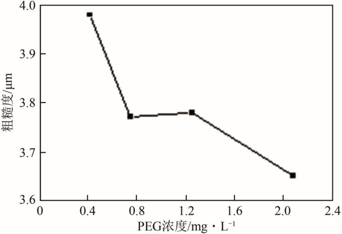 PEG的浓度对铜箔性能也存在不同的影响。大部分情况下随着添加剂浓度升高,铜箔的粗糙度降低,如图13所示。