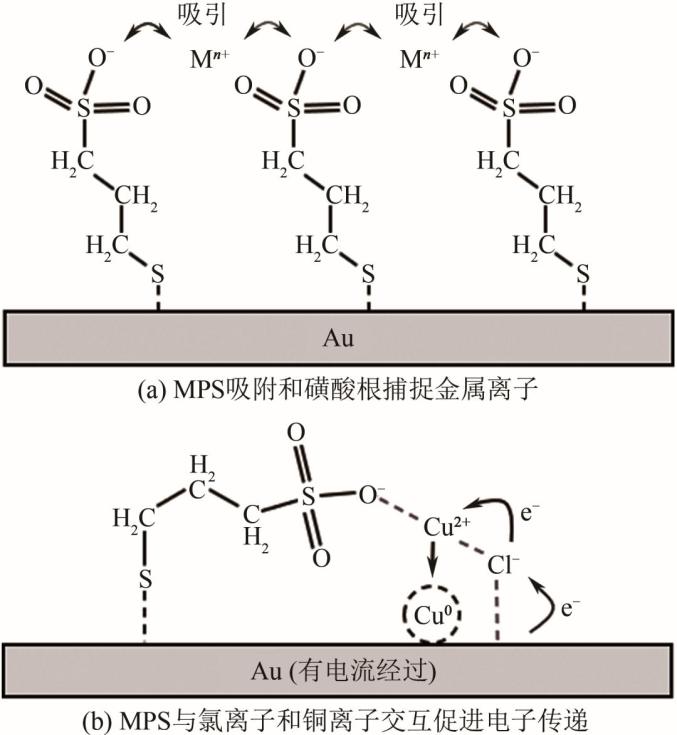 MPS和SPS对铜沉积反应的影响机理主要有两种:一是吸附,二是络合。