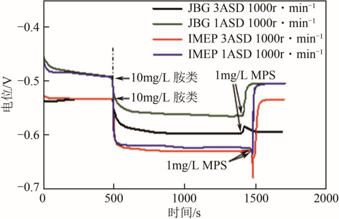 图18 JGB、IMEP与MPS对铜电解反应电位的影响2.2