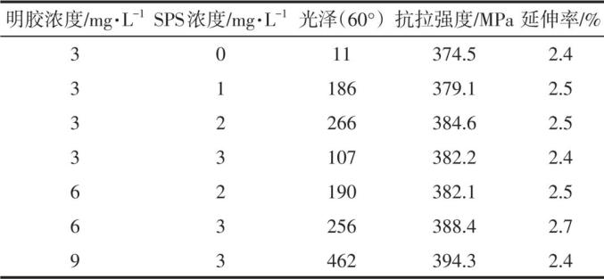 表3 胶原蛋白与SPS协同作用对铜箔性能的影响
