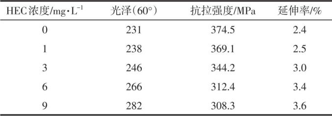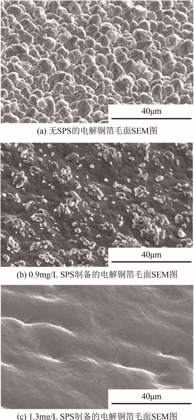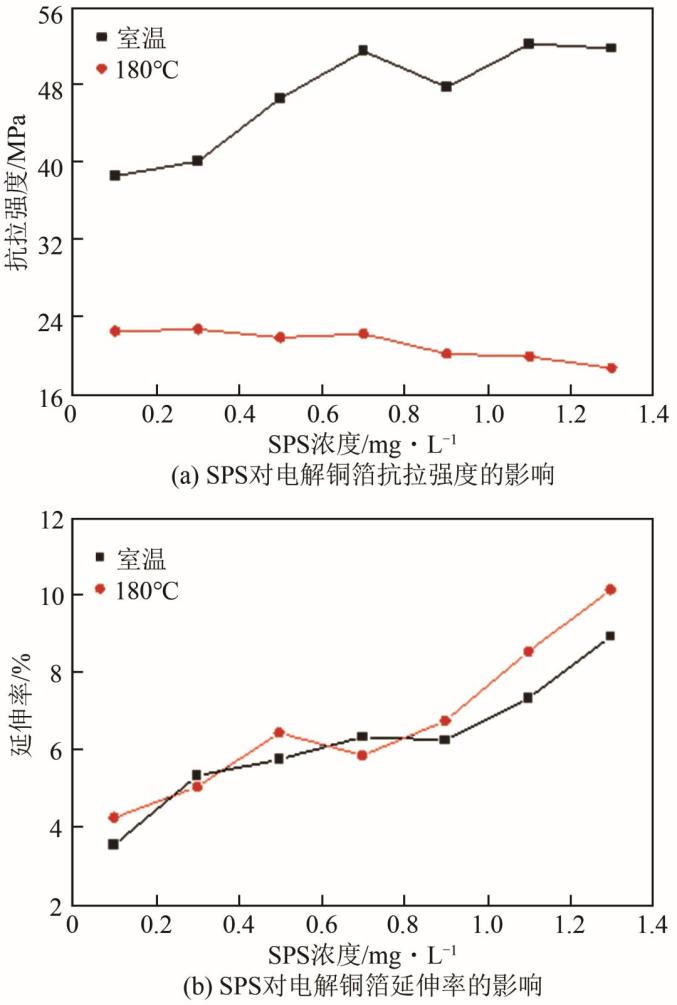 考虑到含硫有机物对电解铜箔的光亮作用需与其他添加剂(常为一定量的Cl-)共同作用实现。因此,以下以SPS为代表讨论其对电解铜箔性能的影响时,包含其与Cl-的共同作用部分。