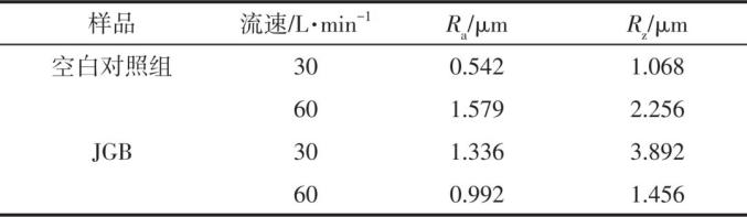 表1 不同流速下JGB对电解铜箔表面粗糙度的影响
