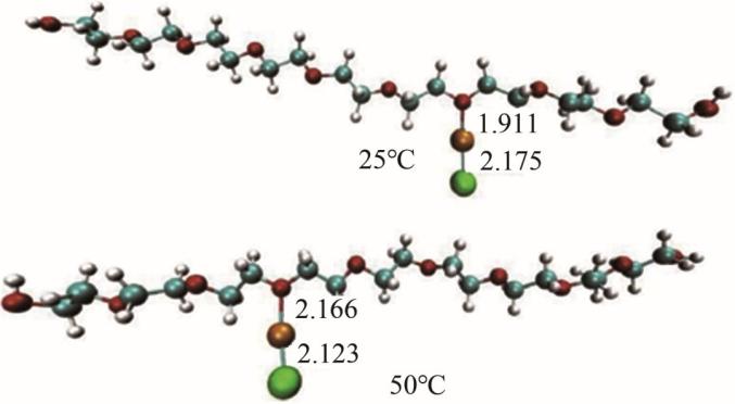 图11 PEG-Cu+-Cl-结构单层灰色—碳原子;白色—氢原子;红色—氧原子;橙色—铜离子;绿色—氯离子