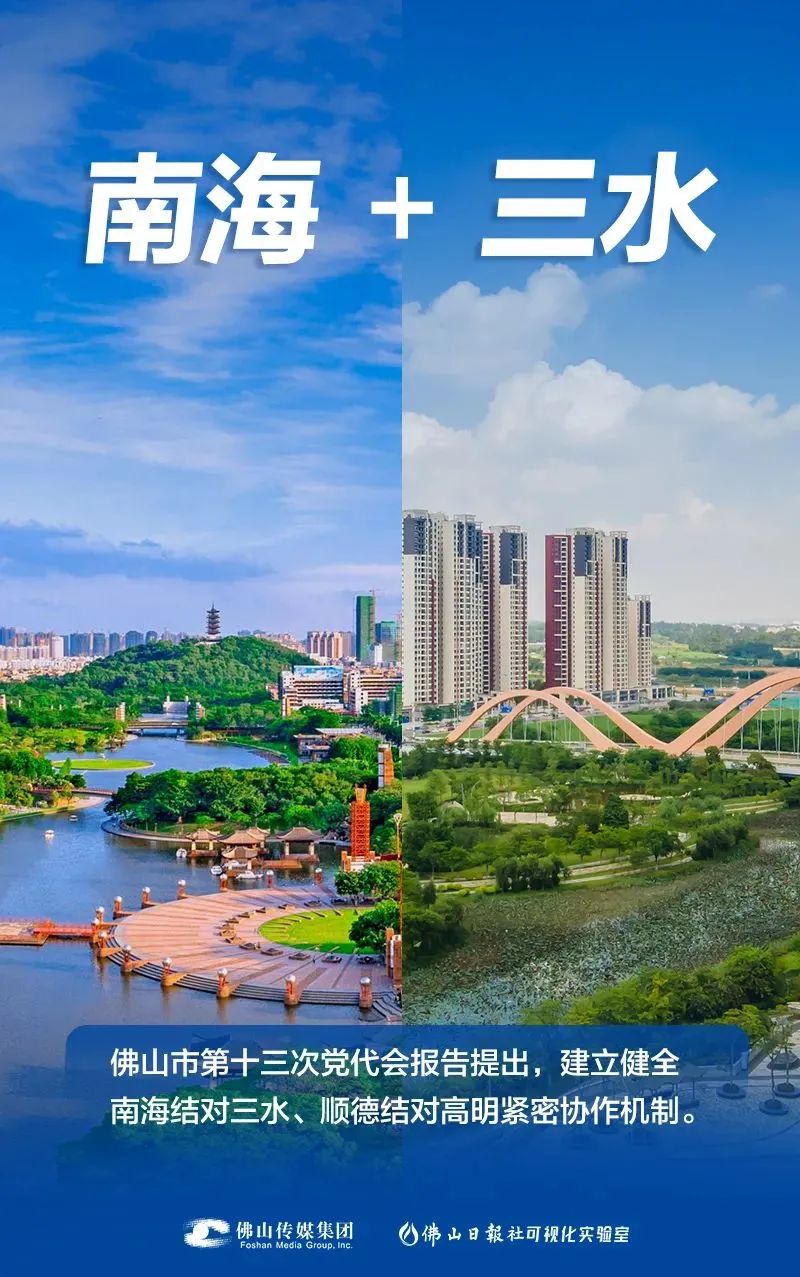 佛山市第十三次党代会报告首次以更高的维度提出:未来五年,佛山要实现协调发展向高质量快速跃升,务必成为城乡区域协同发展领头羊,进一步优化产业空间布局、资源要素配置,建立健全南海结对三水、顺德结对高明紧密协作机制,东、西、南、北、中互动发展。报告内容全文公布后,“南海+三水”、“顺德+高明”这个重大战略话题,成为全城媒体关注的热点。
