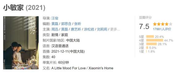 ▲《小敏家》豆瓣评分7.5分虽然那画中人已经发福到认不出,却仍旧能勾起观众一段20多年前的《人间四月天》《橘子红了》旧情来。