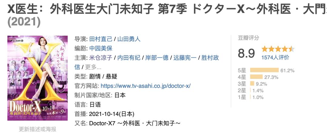 尤其今年推出的第七季《X医生:外科医生大门未知子》。