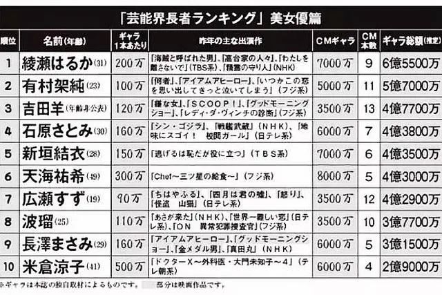 比如,日本女演员中,广告费排名第一的是绫濑遥。