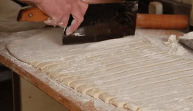 6、切成一条一条的,两手分别拽两端,用力适当,拽成长条。拽面稍微宽些,吃起来非常的筋道。