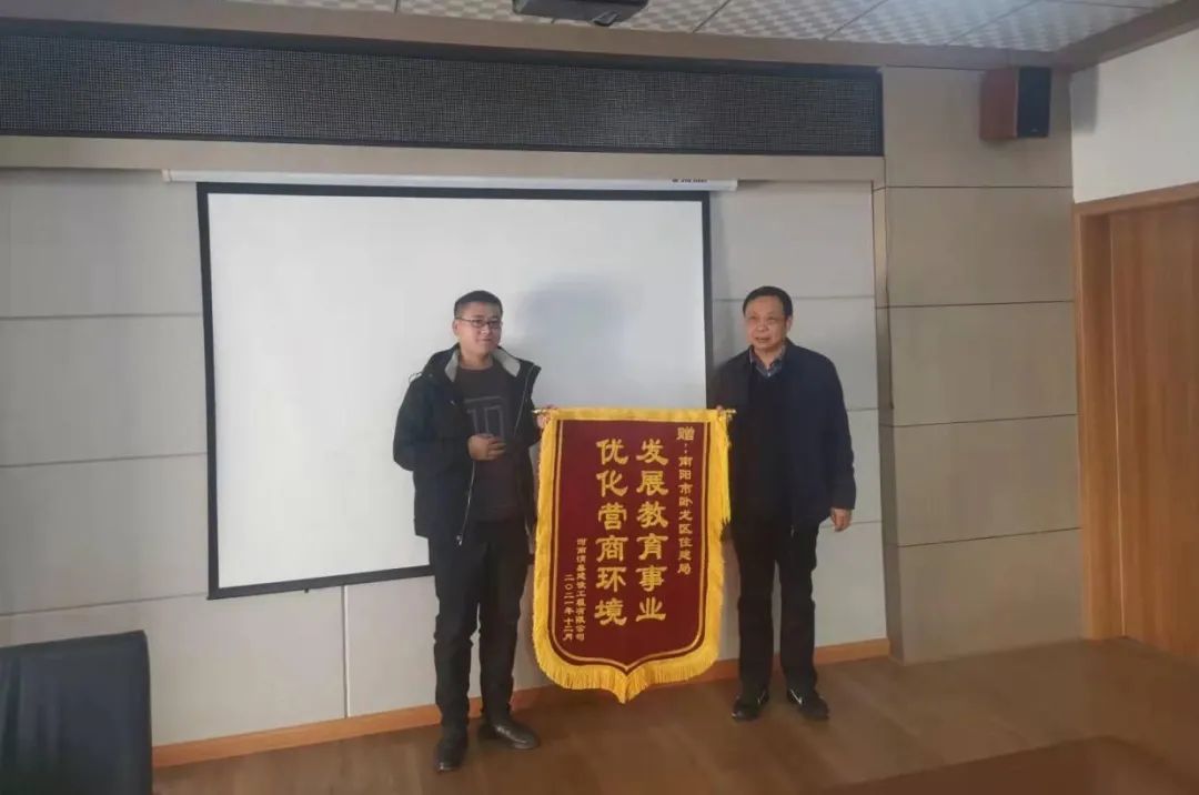 12月20日上午,河南淯鑫建设工程有限公司负责人将一面写有“优化营商环境、发展教育事业”的锦旗送到卧龙区住建局,对区住建局情系企业、高效便捷的优质服务表示感谢。