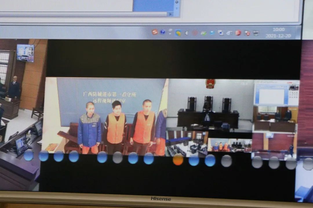 12月20日,港口区人民法院对被告人刘某宇参加黑社会性质组织、开设赌场案,被告人钟某兴、张某、吴某业寻衅滋事案两起涉黑涉恶案件集中宣判。为做好新冠肺炎疫情防控工作,此次宣判通过远程提讯系统平台进行,四被告人远程出庭接受宣判。