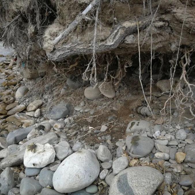 玉树和唐家河的人工河岸河岸差异在于右边唐家河的人工河岸仍然保持原来的状态,有消落带,且河中有石头;而左图的玉树河道已被清理,拍摄时期为旱季,有裸露出来的台阶,在洪水季,水两边只有陡峭的人工河岸。