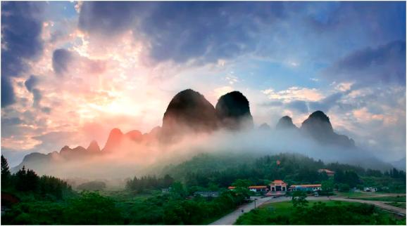 天龙山“天龙山峰插云霄,桃江曲折环山绕,