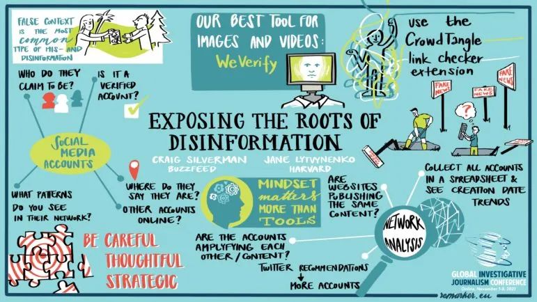 即使有了这些工具,两位讲者都提醒要在下判断之前格外小心,并且要收集到具体的证据。西尔弗曼提醒说:“从事事实核查工作的人经常出错的方式之一是错误地进行归因,下了一个结论,但没有足够的证据来支撑它。所以你要谨慎行事,不断收集证据,直到你有高度的信心可以做出判断。”