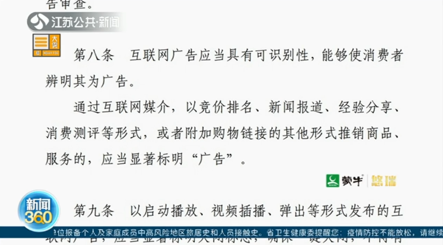 眼下,国家市场监管总局发布的《互联网广告管理办法(公开征求意见稿)》正在征求意见(截至12月25日),其中明确规定互联网广告应当真实、合法,互联网广告市场主体应当遵守法律、公平竞争。同时也明确了发布平台的责任,规定互联网平台经营者明知或者应知互联网广告活动违法不予制止的应予以处罚。