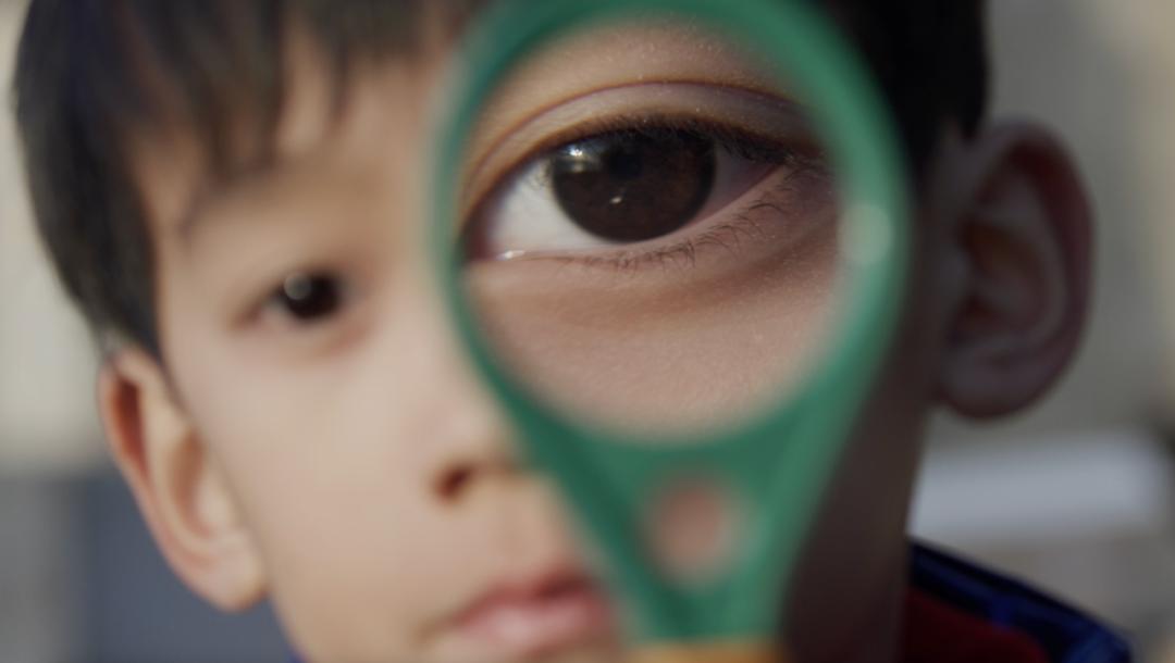 “我们就想做一些新的拍摄方法尝试,从他只有7岁的幼小内心来看这个世界。所以刚开始的镜头设计,比如说一个放大镜对着他的眼睛,都有这种暗示在里面:我们接下来要透过他的眼睛来看他的家庭是什么样的,他的海岛生活是什么样的,以及他对整个世界是一个怎么样的认识。”