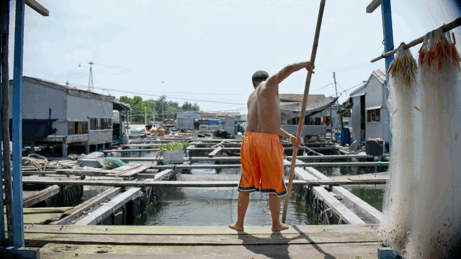 老何和他的渔排“所以也产生了很多我感觉很遗憾的镜头,比如拍他自己出去捕龙虾 —— 当天是有船先接我们摄制组上船,然后他再过来。我们上船后,我回头看他,就那么一瞬间,他是正好迎着夕阳,伫立在船头,就半蹲着,像一个鱼鹰。当时太阳光打在他的脸上,加上他那种坚定的眼神,这种画面太好了,但你如果真的把摄像机放在他面前去呈现,就没有那么好弄。”