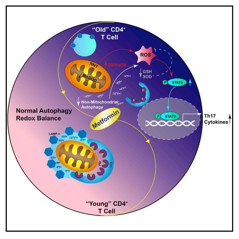 与年轻受试者相比,老年受试者的T细胞在自噬和线粒体生物能学方面存在缺陷,这些缺陷与氧化还原失衡有关。但令人惊讶的是,二甲双胍增加了老年受试者CD4+ T细胞的自噬水平,并将其线粒体生物能学和T细胞炎症特征转换得与年轻受试者一般无二。此外,研究人员还通过自噬靶向的siRNA破坏了年轻受试者T细胞的氧化还原平衡,并激活Th17主调节因子STAT3,进而结合IL-17A和F启动子。他们发现这些来自年轻受试者的Th17炎症特征与老年受试者难以区分。