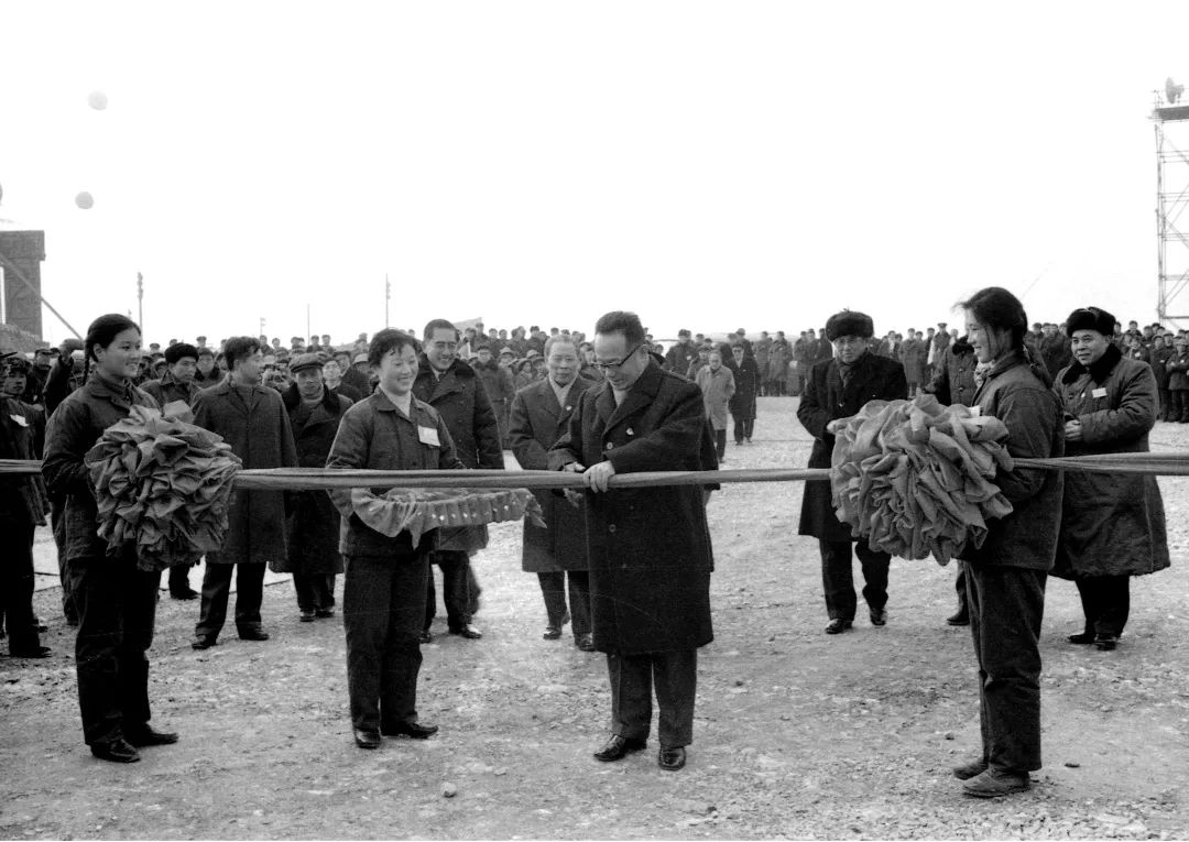 时为国务院副总理谷牧为宝山钢铁厂动工剪彩