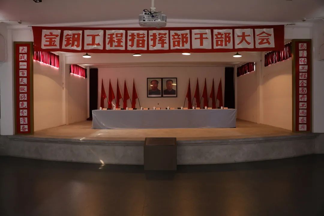 宝钢工程指挥部干部大会复原会场钢铁巨人立东方 宝钢一期工程投产