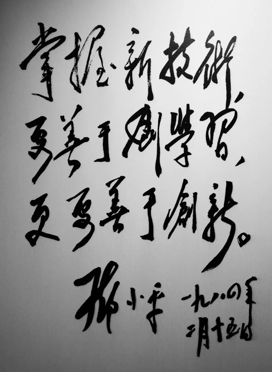 1984年,邓小平视察宝钢题词上,有一处修改明显可见:他先写了“掌握新技术,要善于创”,然后停下,对“创”字画了一个圈,以示删去,再接着写下去,于是现在人们看到的全句是“掌握新技术,要善于学习,更要善于创新”。