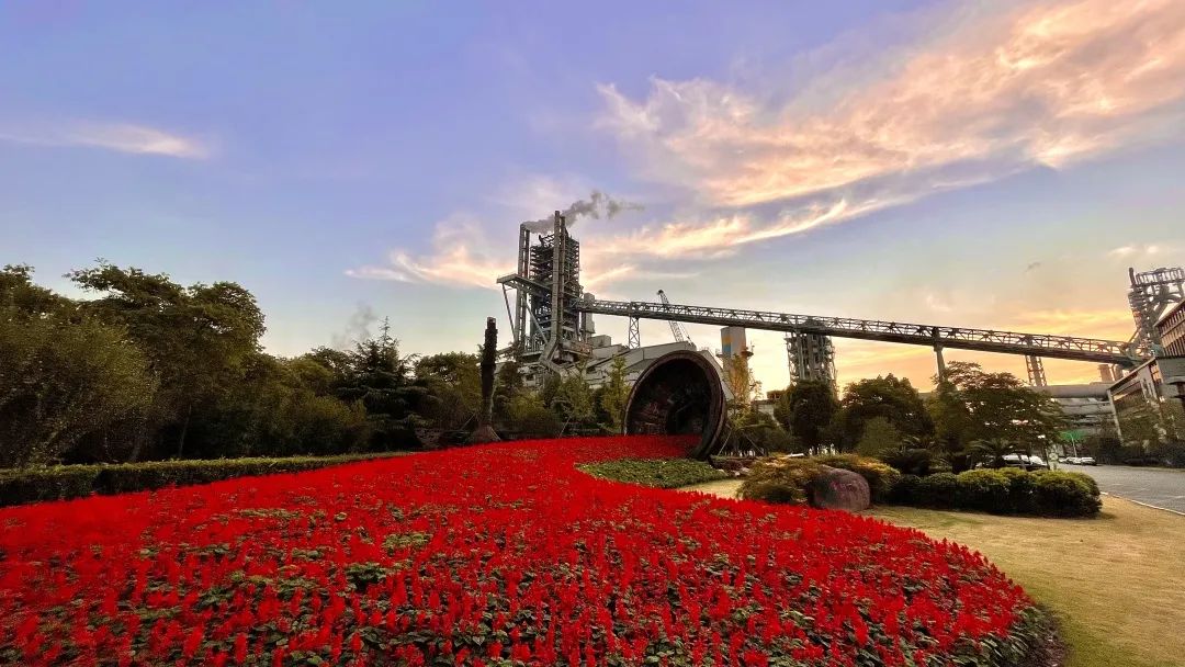 宝钢一期工程建成投产纪念盘一期退役设备成为宝钢厂区工业雕塑景观