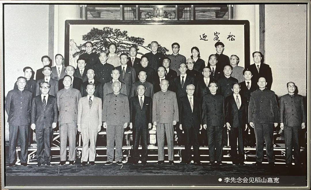 时任国务院副总理李先念与来访的日本新日铁董事长稻山嘉宽探讨由新日铁协助在中国沿海建造大型钢厂的设想。