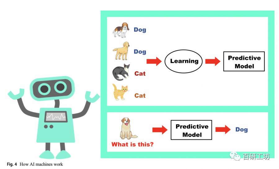 (1) AI的定义。大多数教师给出了这样的定义:“人工智能是指机器执行类似于人类学习和决策的任务的能力。”学生应该理解人工智能机器如何使用数据来发展能力的基本概念,包括建模、统计推理和学习算法。为了更好地训练模型和算法,需要云计算来处理大量的数据。这个定义产生了子主题1.2的内容选择:人工智能的处理过程。