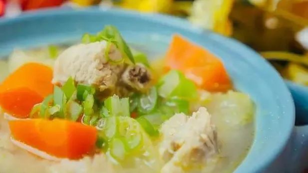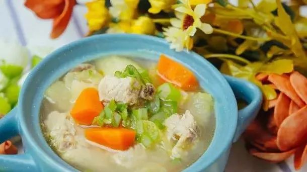3.将竹荪、山药,排骨和生姜加入煲中,加适量清水,用大火把汤烧开,转小火慢炖1.5小时左右,加入枸杞、加盐调味即可。