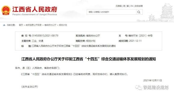 原标题:《江西省“十四五”综合交通运输体系发展规划印发:建设“六纵六横”综合运输大通道》
