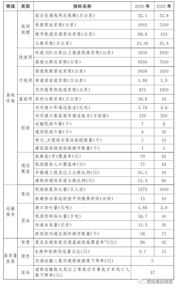“十四五”期间综合交通运输主要发展目标指标表