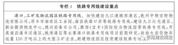 强化网络有效衔接。优化高速公路出入口布局,强化干线公路与城市道路、农村公路便捷衔接,推动进出城瓶颈路段改造升级。进一步完善赣州、南昌、九江、鹰潭、上饶等各大物流枢纽集疏运体系,加快推进一批集疏运铁路、公路建设,增强物流枢纽与外部通道的衔接,为公铁、铁水、空陆等多式联运提供基础支撑,打通公铁水联运衔接“最后一公里”。积极推进重点港区、重要物流基地集疏运铁路、公路建设,加快建设九江港城西港区、彭泽港区、抚州中物宝特物流有限公司、萍乡市湘东区工业园、南昌铁路口岸等铁路专用线。