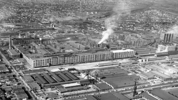 ▲ 图为20世纪40年代、21世纪初美国底特律东部帕卡德汽车厂的场景对比。该厂由阿尔伯特·卡恩设计,在1903-1958年间为帕卡德汽车公司生产豪华汽车,在美国去工业化进程中逐渐被废弃。——社会上的极化。