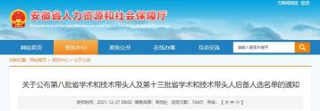 关于公布第八批省学术和技术带头人及第十三批省学术和技术带头人后备人选名单的通知皖人社发〔2021〕22号