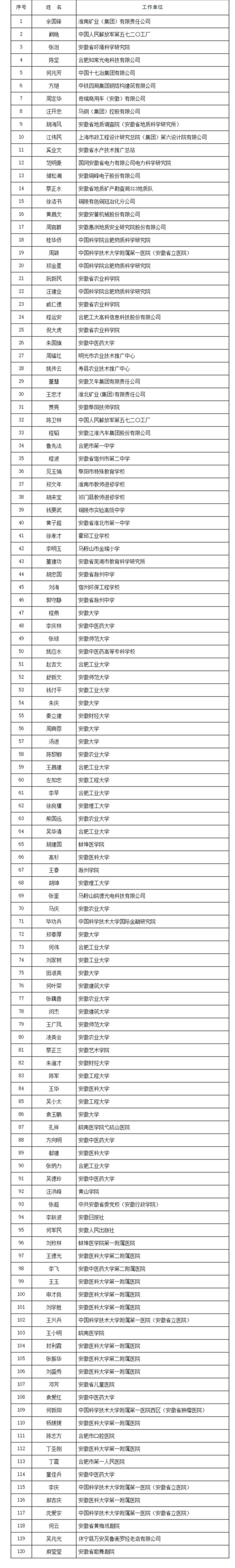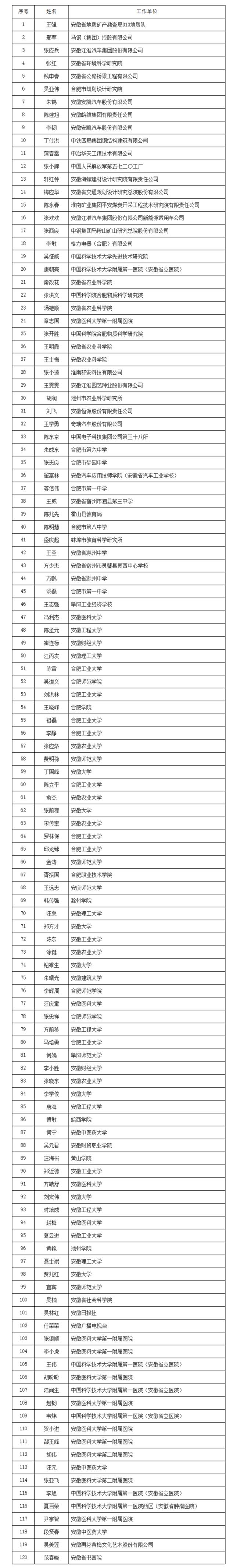 近日,安徽省人社厅发布《关于公布第八批省学术和技术带头人及第十三批省学术和技术带头人后备人选名单的通知》。报省政府同意,确定第八批省学术和技术带头人(120人)和第十三批省学术和技术带头人后备人选(120人)名单。