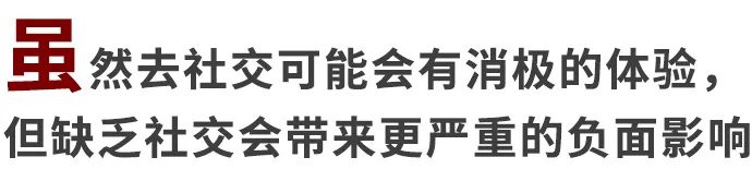 也就是说,当一个人没有新的、积极的社交体验来覆盖过去糟糕的记忆时,“社交”就会渐渐和“负面体验”划上等号,即便这些消极预期不一定会在实际的社交中发生,但趋利避害的天性还是会让我们选择回避。