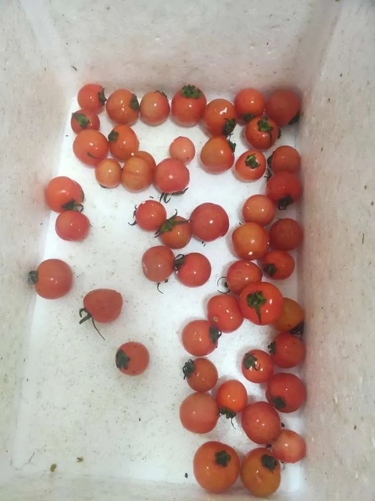 杨女士收到快递时,快递箱只有一些小西红柿。(受访者供图)“无论是接件的快递驿站或派件员,都称没有动过包装里的东西。”24日晚,文先生来到河池中通快递网点讨要说法,工作人员告诉他,快递箱在柳州出现破损,并出示了相关照片。