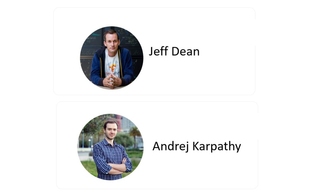 那时候,谷歌AI掌门杰夫·迪恩(Jeff Dean)和美国斯坦福大学博士安德烈·卡帕西(Andrej Karpathy)常常叫上精神小伙们,围桌讨论。