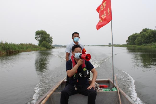 今年7-8月份,滕庆春带领村“党员突击队”将疫情防控从陆路向湖区延伸,设立水上哨卡,每天巡防值勤、测量边界渔民体温,劝返扬州等地鱼虾贩150人次,守牢湖滨村“绿码阵地”。为了达成“双增”计划,滕庆春及时向人社局、市监局等单位了解企业注册、建设、投产等政策,通过线上招商,主动联系无锡客商来金湖投资兴业,企业在领取营业执照一个月内全面投产,增加村集体收入8万元,有力增强“小渔村”的“造血”功能。
