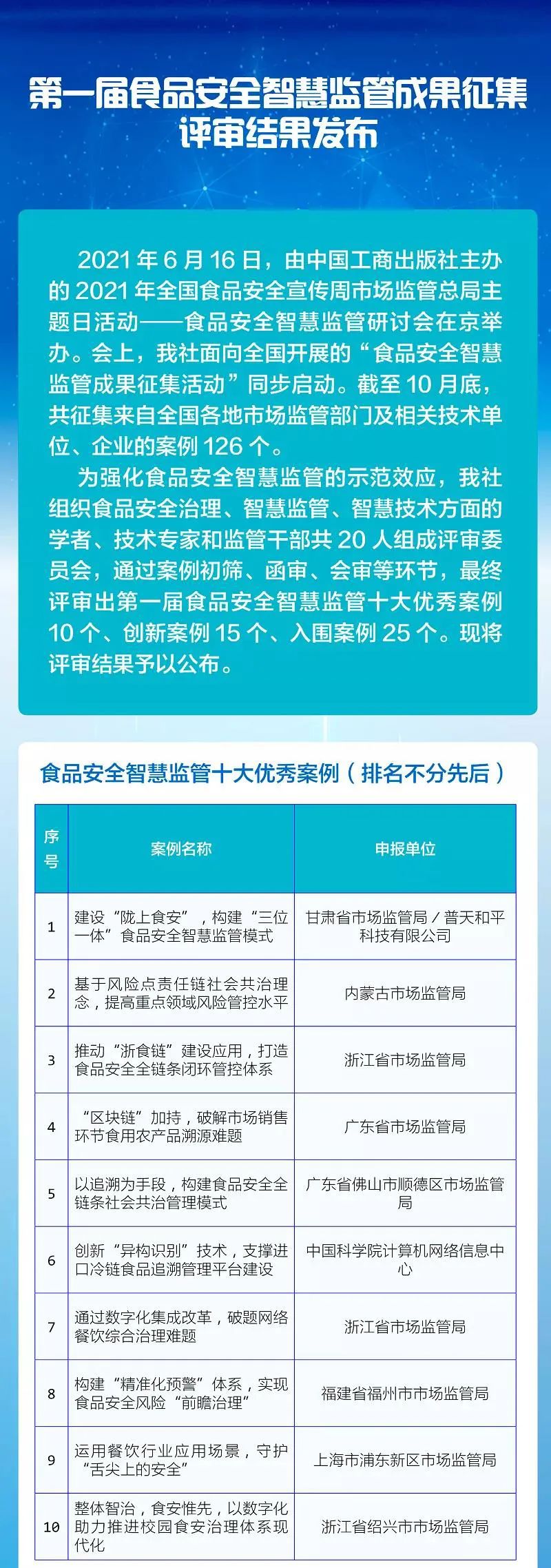 原标题:《省市场监管局“陇上食安”获评全国食品安全智慧监管十大优秀案例》